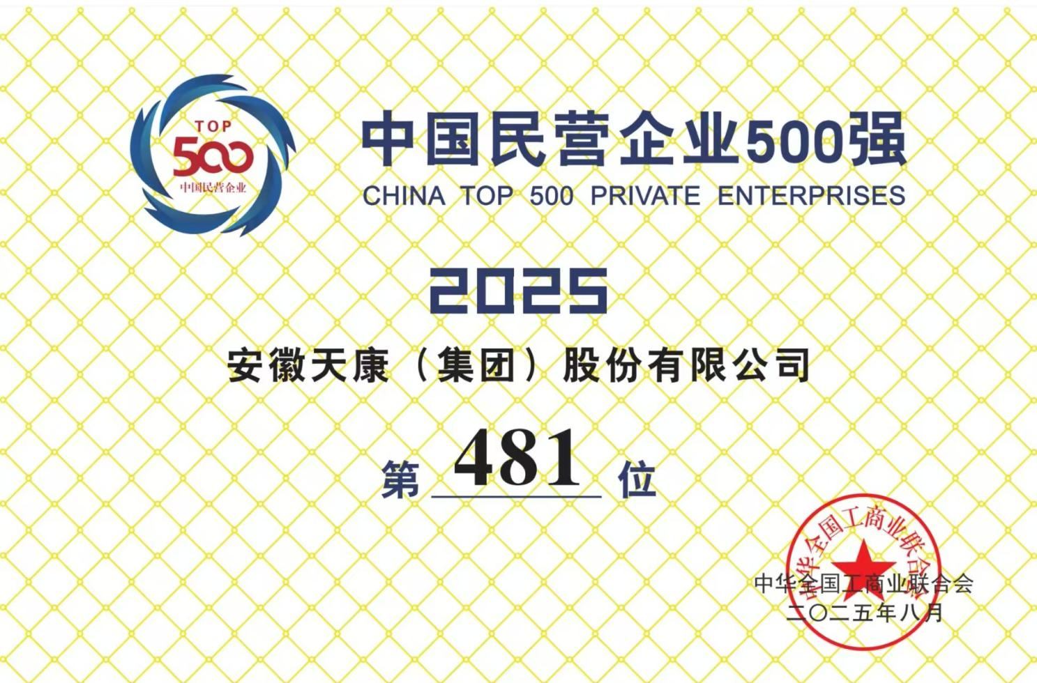 На конференции были официально объявлены списки «500 лучших частных предприятий Китая 2025 года» и «500 лучших частных производственных предприятий Китая 2025 года». Группа компаний Anhui Tiankang, благодаря своему мощному развитию и выдающейся комплексной конкурентоспособности, вошла в оба списка, еще раз продемонстрировав важную роль компании в обрабатывающей промышленности и частном секторе Китая. Эта награда является не только высоким признанием приверженности группы Tiankang философии развития «ориентация на качество, инновации и сервис прежде всего» на протяжении многих лет, но и свидетельством единства и стремления к совершенству всех сотрудников Tiankang.