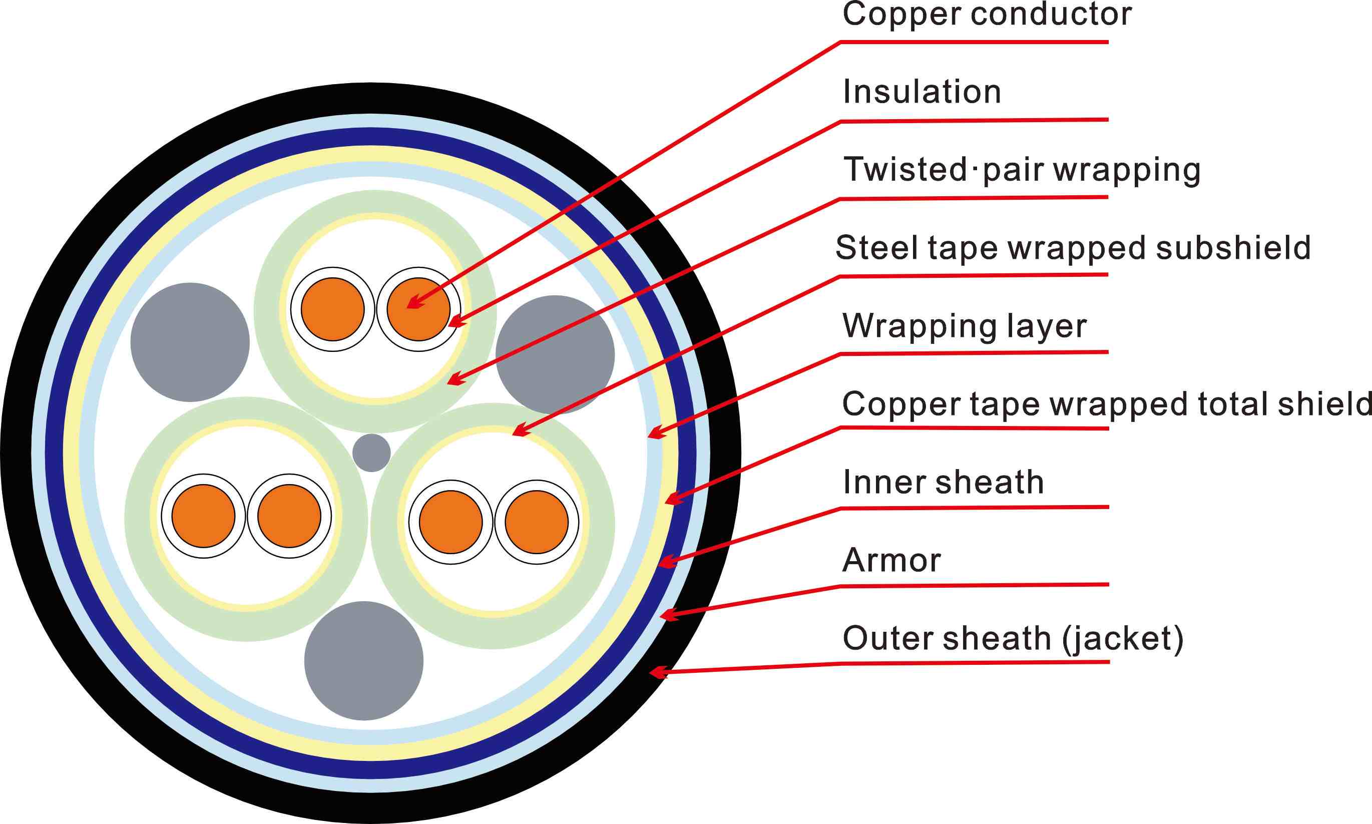 Изоляция: PE/XLPE для низких диэлектрических потерь; PVC/EPR на выбор.