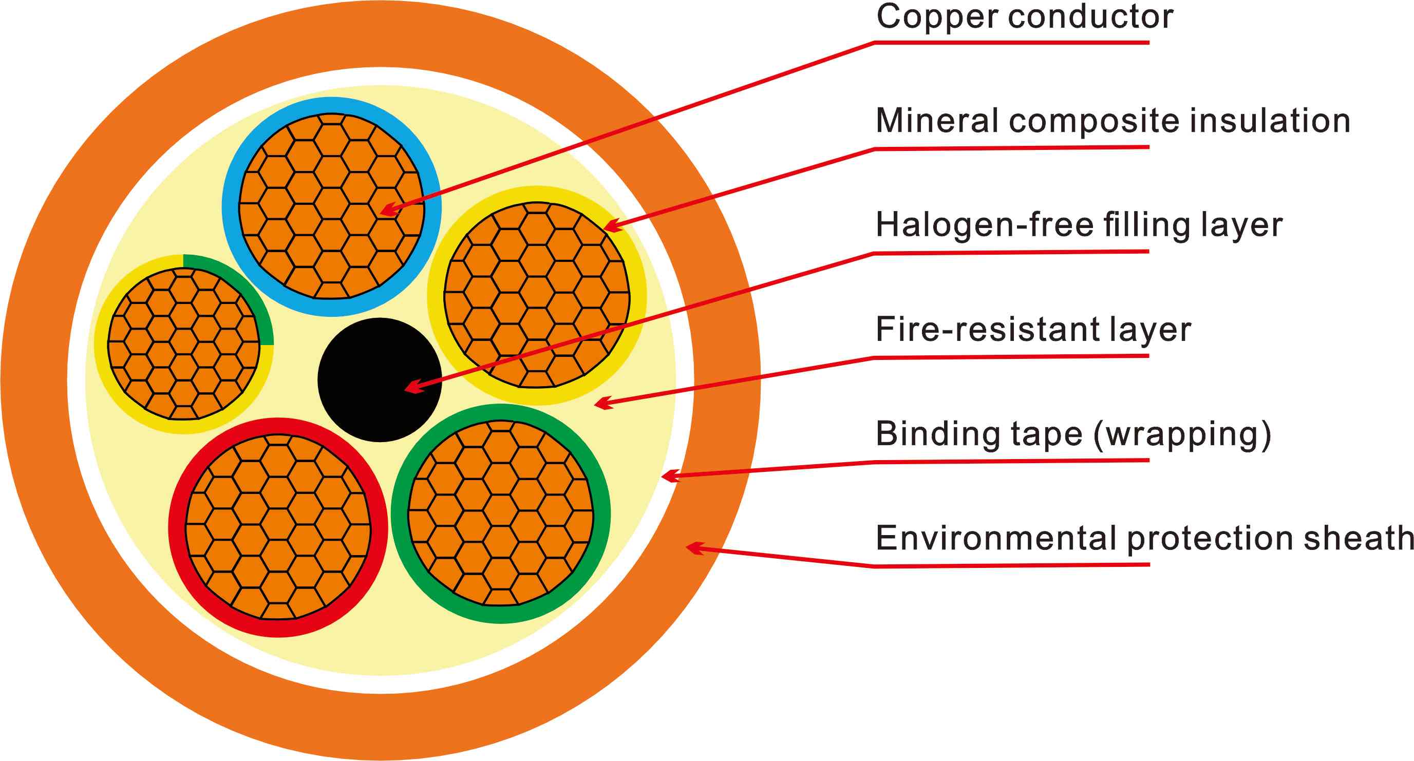Неорганическая изоляция с превосходной огнестойкостью; целостность цепи под воздействием огня, ударов и брызг воды