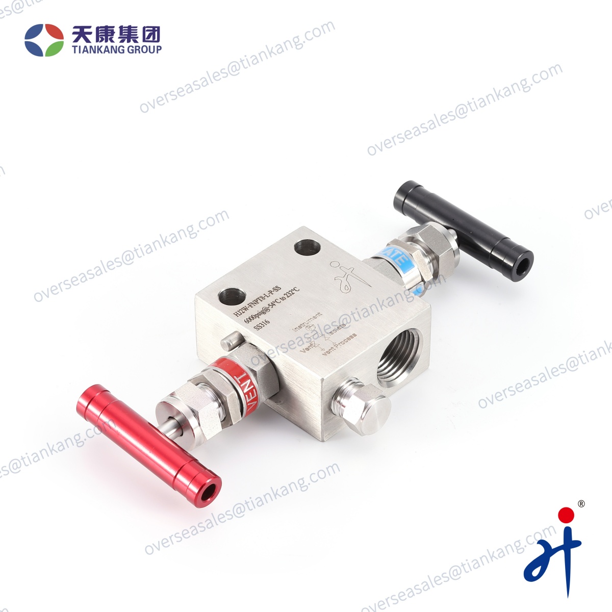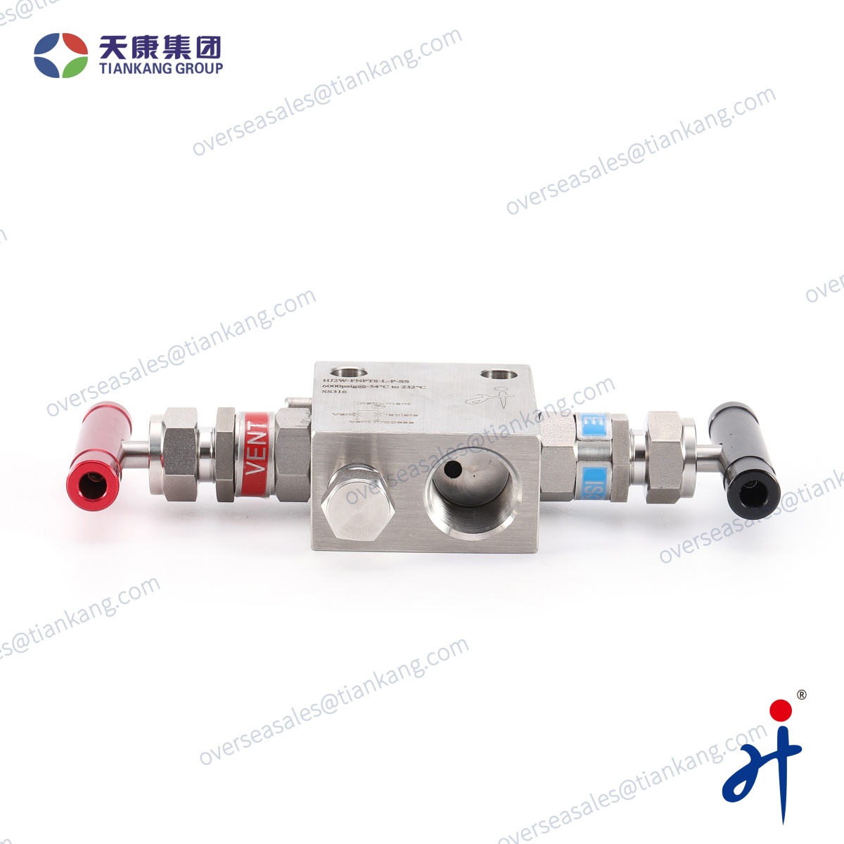 Двухклапанный манифольд TIANKANG HONGJI (клапаны с линейным монтажом) производства компании Hongji Instrument & Valve Manufacturing Co., Ltd. объединяет несколько клапанов в одном корпусе с несколькими соединениями. Это оборудование используется для измерения и выравнивания давления, дифференциального давления, статического, избыточного и переменного давления в технологических линиях посредством стравливания, блокировки и калибровки с помощью приборов измерения давления, таких как манометры, датчики давления и датчики дифференциального давления.