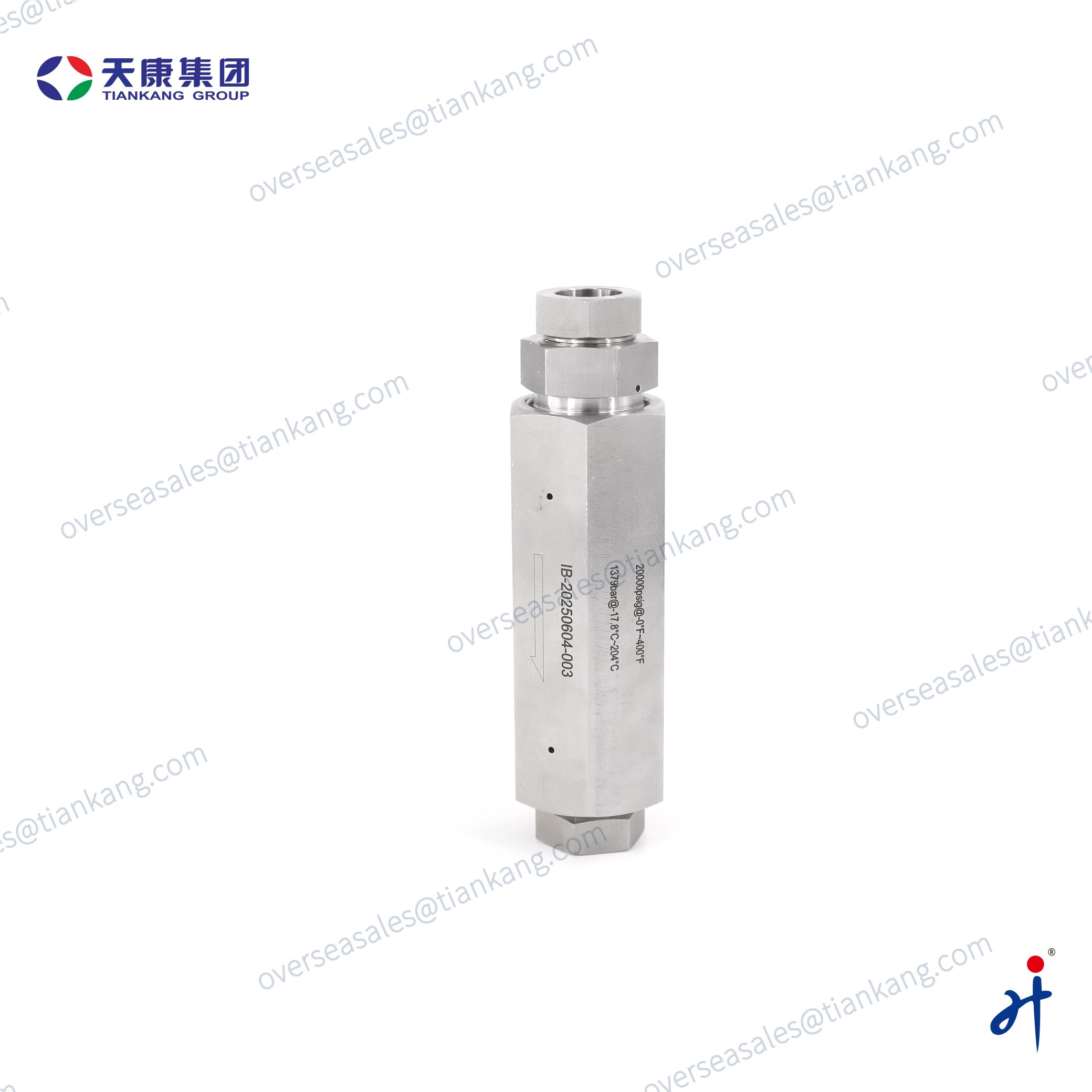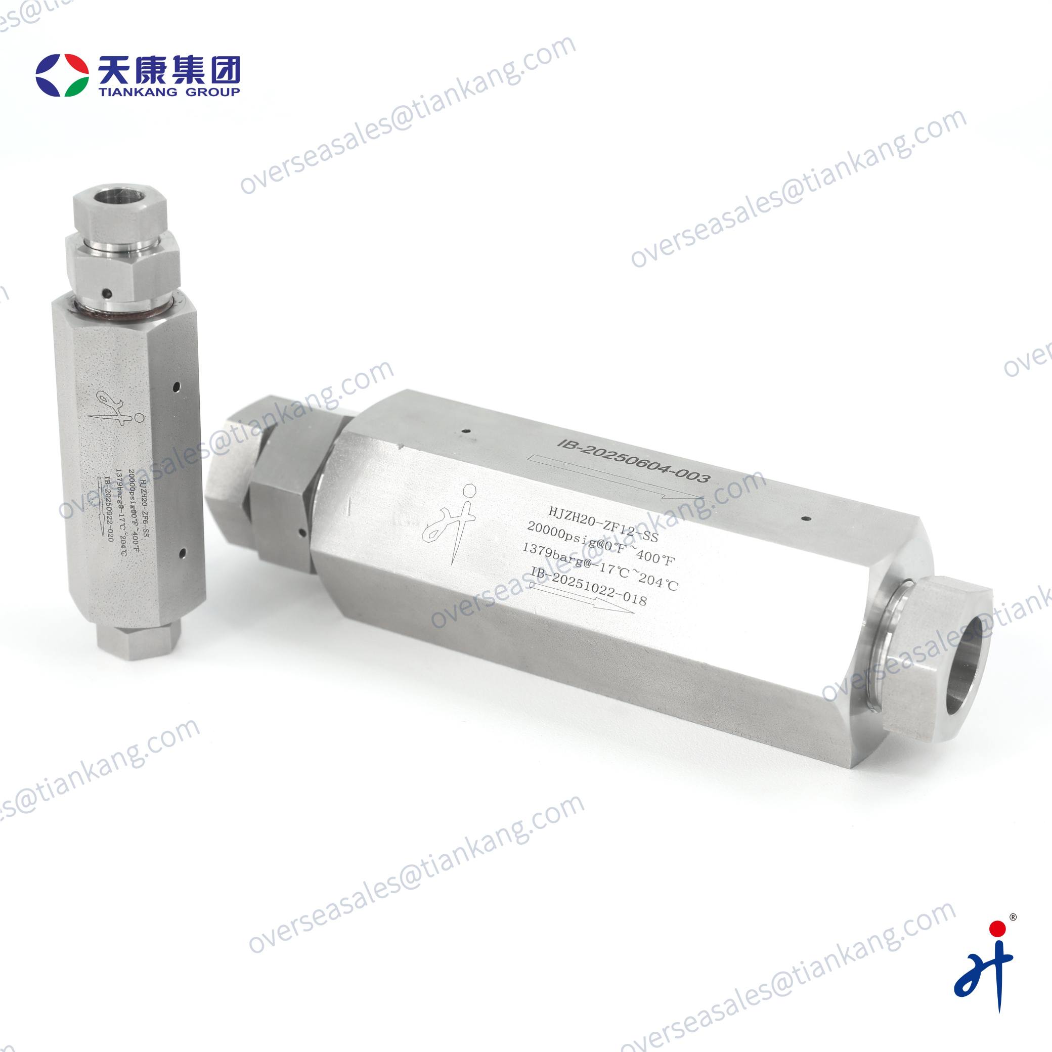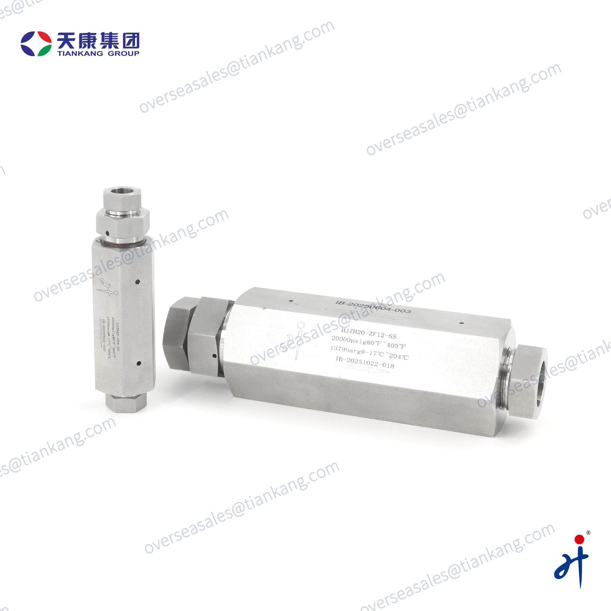 The TianKang HongJi Medium and High Pressure Metal-Seated Check Valve provides reliable one-way flow control for demanding hydraulic and instrumentation systems. Its metal seat with O-ring delivers tight sealing and long service life up to 60,000 psig. Made from SS316 with all you can selected high-pressure threads, it suits chemical, oil & gas, laboratory, and high-pressure testing applications.