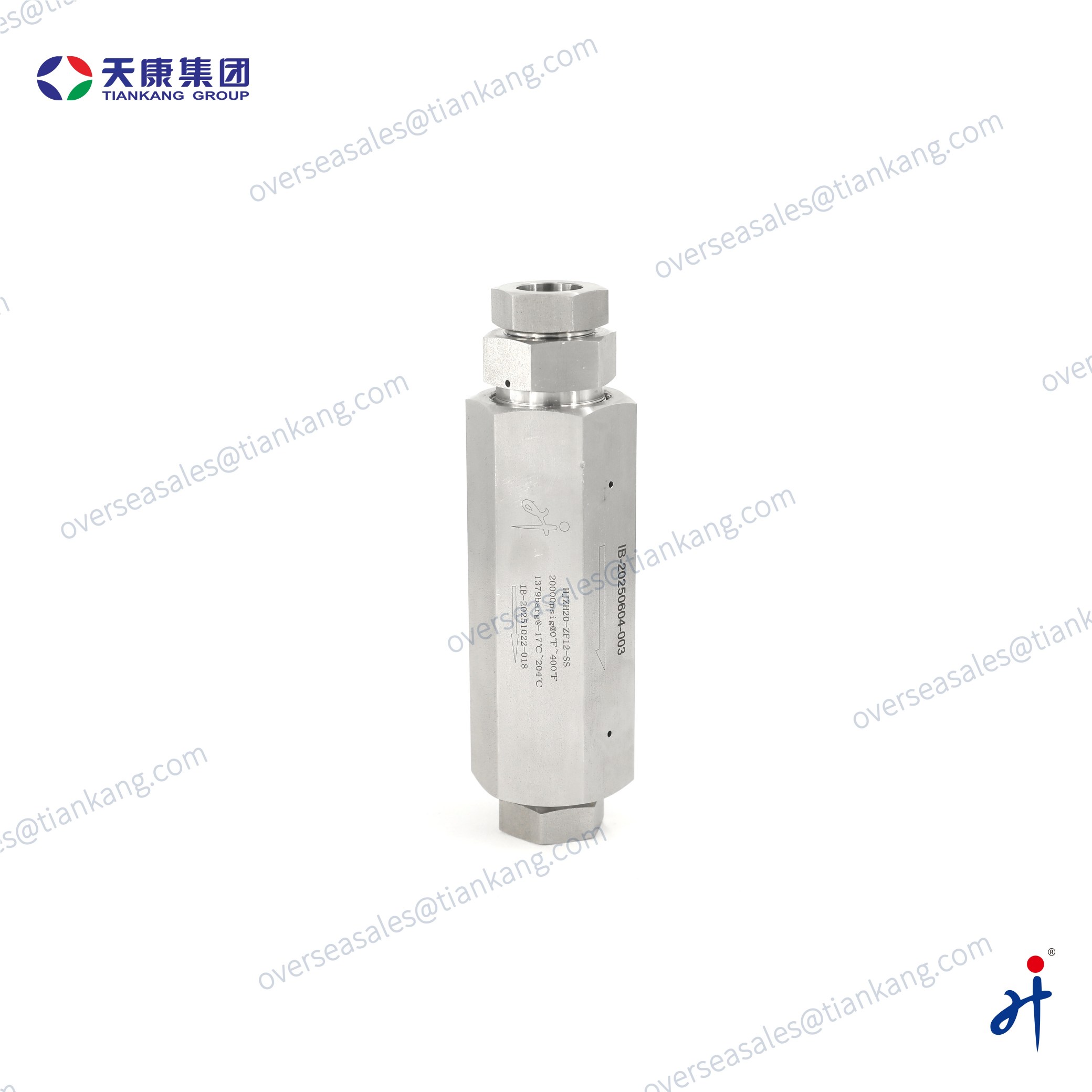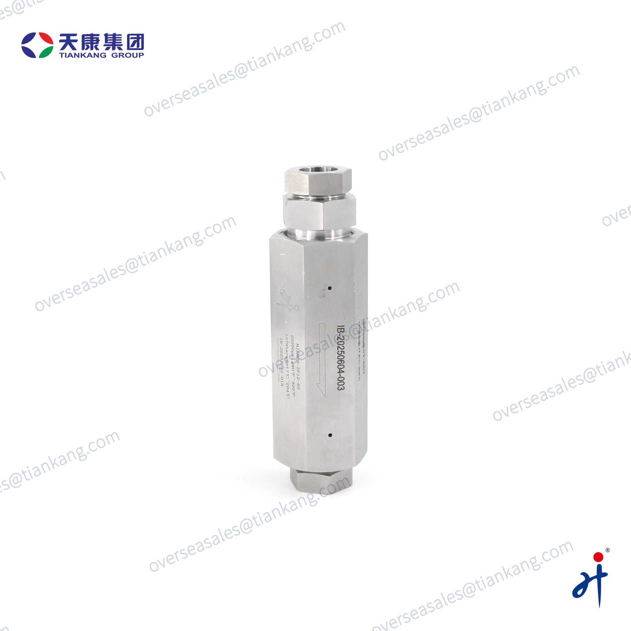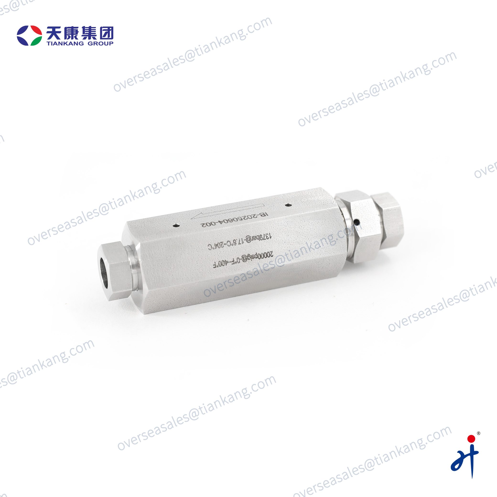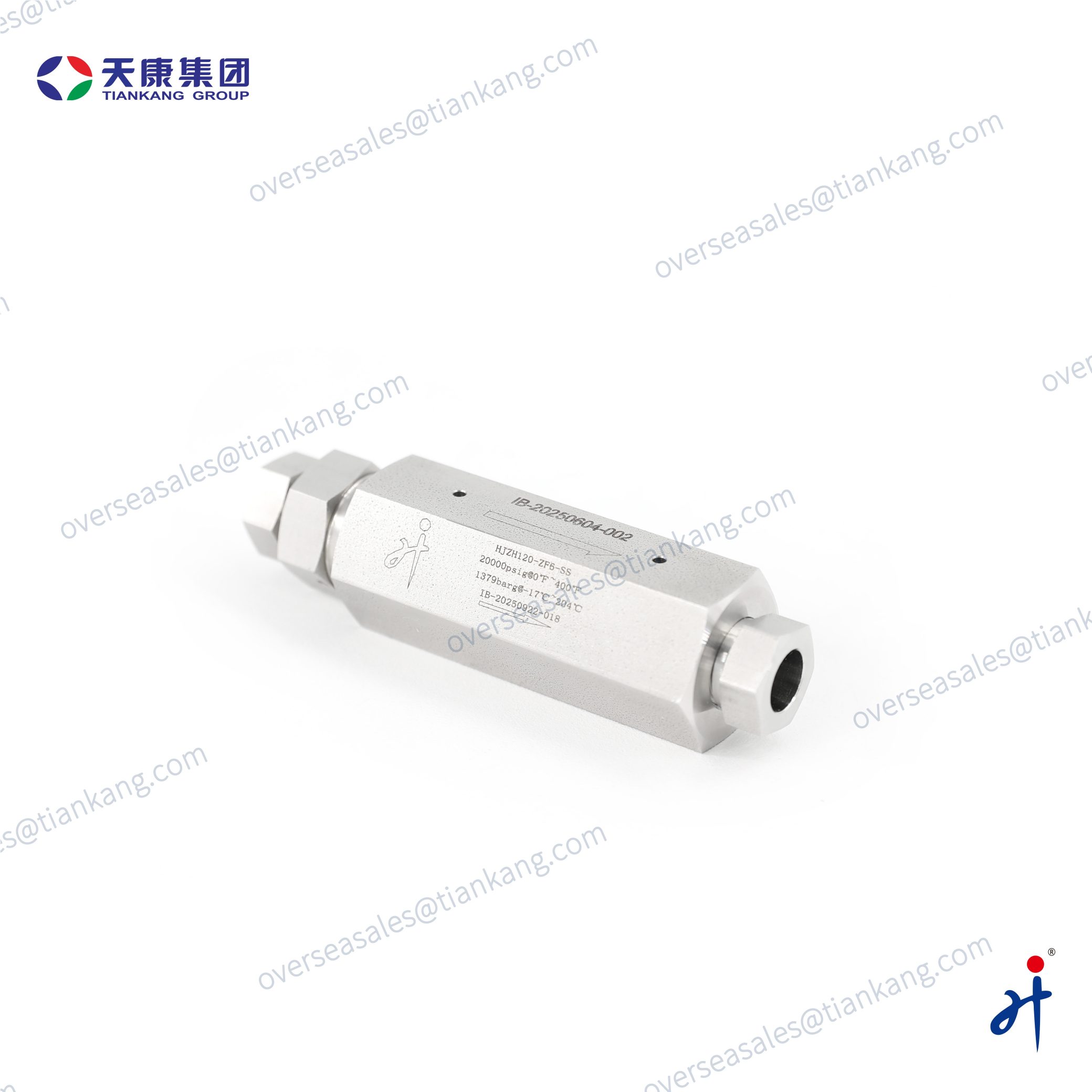 The TianKang HongJi Medium and High Pressure Metal-Seated Check Valve provides reliable one-way flow control for demanding hydraulic and instrumentation systems. Its metal seat with O-ring delivers tight sealing and long service life up to 60,000 psig. Made from SS316 with all you can selected high-pressure threads, it suits chemical, oil & gas, laboratory, and high-pressure testing applications.