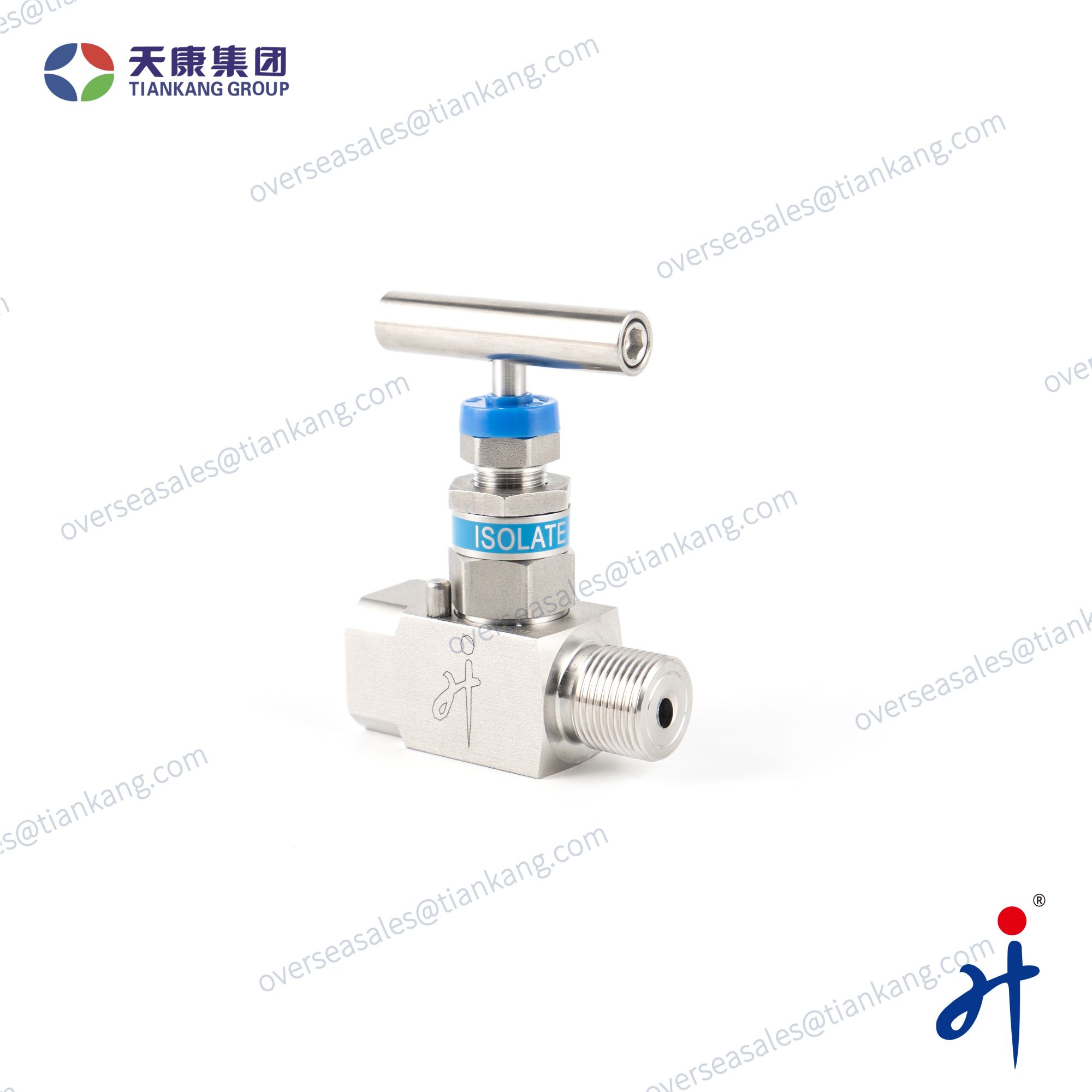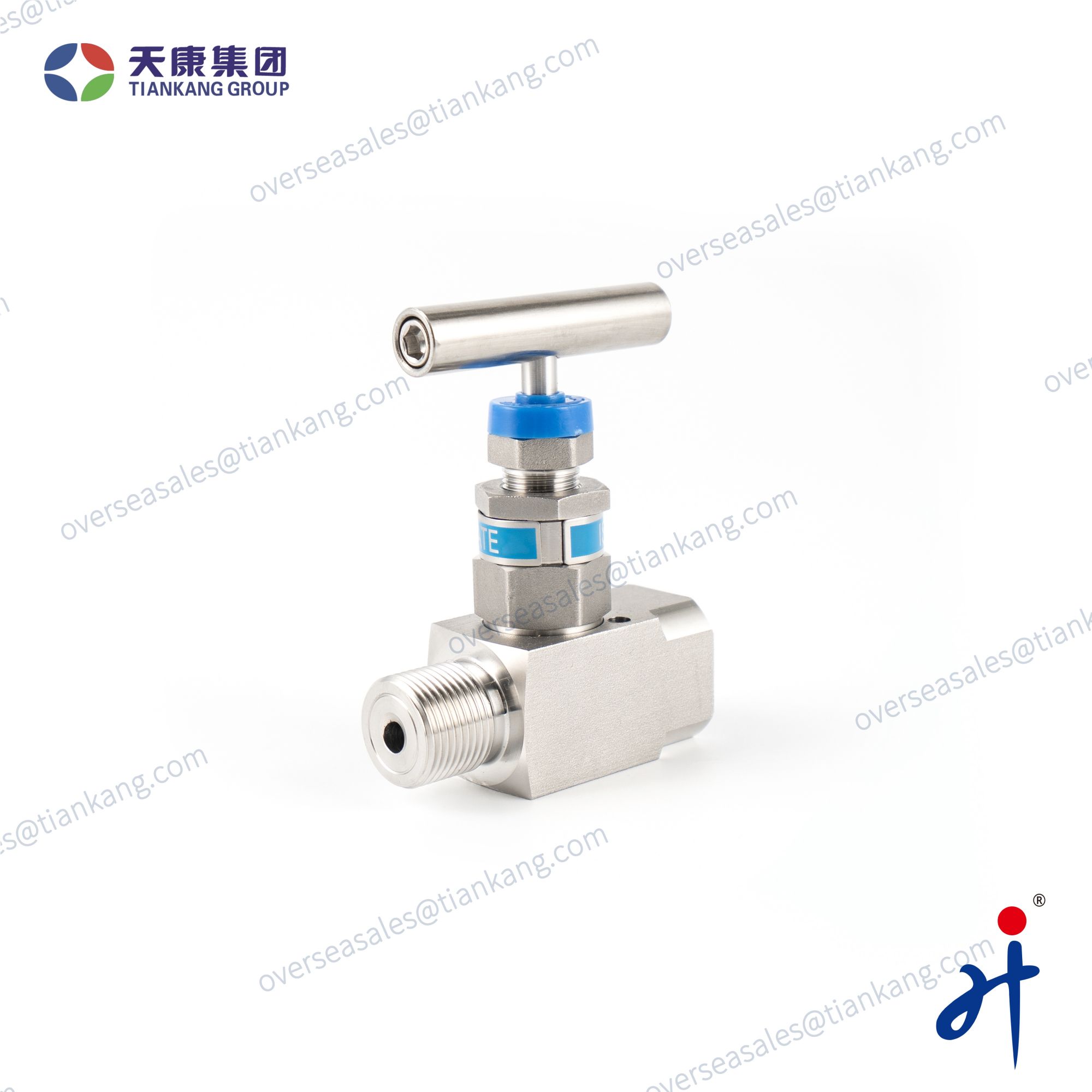 The Tiankang Hongji screwed bonnet needle valves are types of valves used for precise flow control of liquids or gases in a system. It is designed with a long, tapered needle-like plunger that fits into a similarly shaped seat. The valve’s construction allows for very fine adjustments to the flow, making it ideal for applications where precise control is needed.