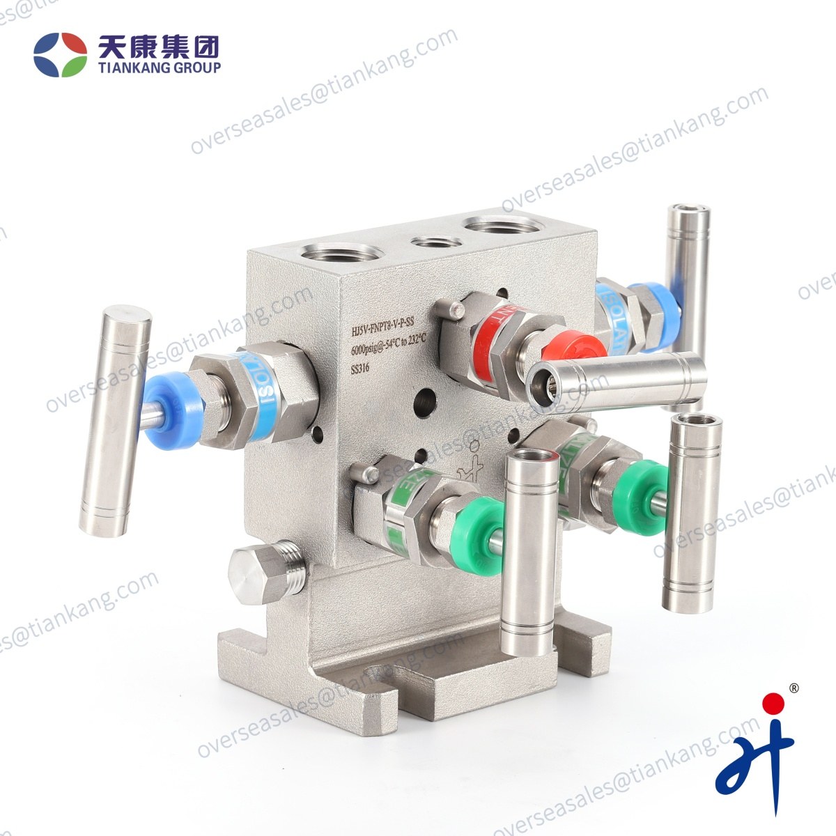 Пятиклапанный манифольд Tiankang Hongji типа T производства компании Hongji Instrument& Valve Manufacturing Co., Ltd. объединяет несколько клапанов в одном корпусе с несколькими соединениями. Это оборудование используется для измерения и выравнивания давления, включая манометры, датчики давления и датчики дифференциального давления, напрямую и косвенно, в технологических линиях КИП, обеспечивая стравливание, блокировку и калибровку.