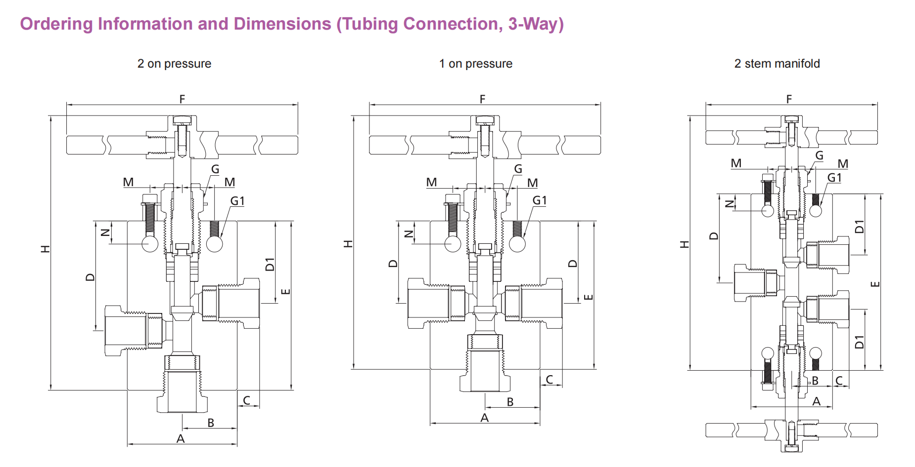 3.Размер сверла для монтажа на панель: 0,25" для всех клапанов.