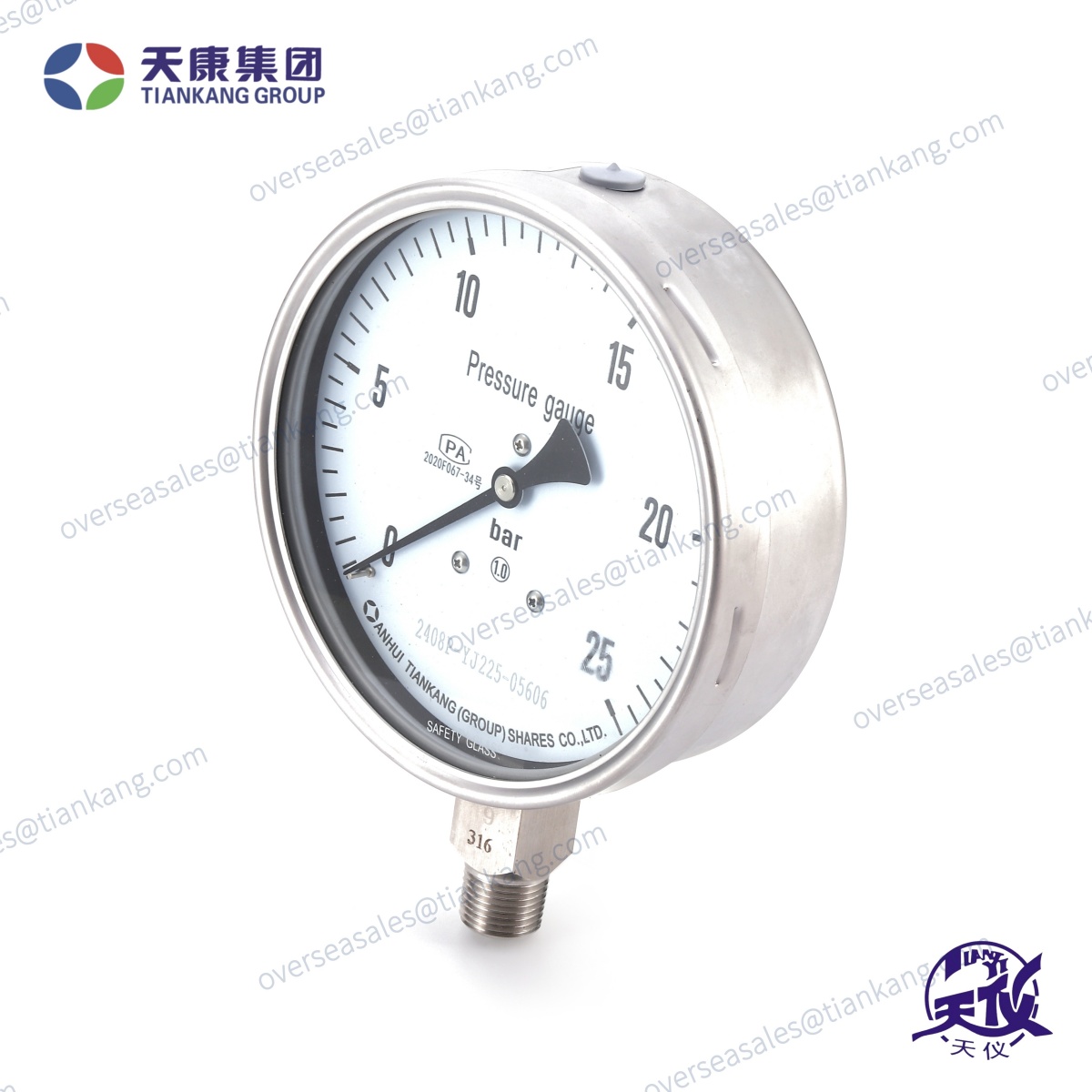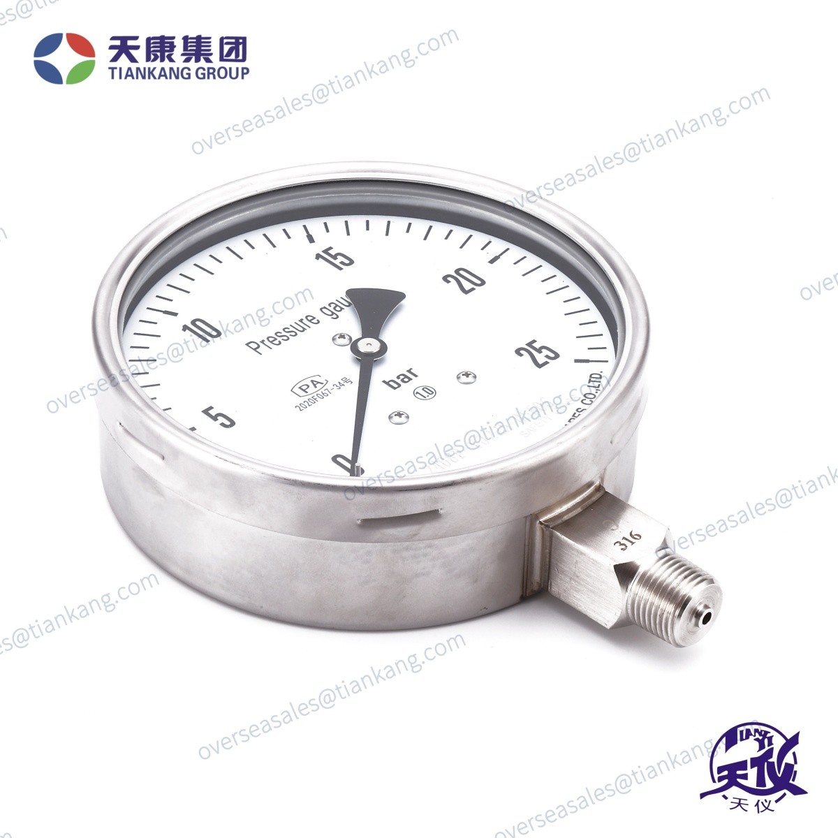 Манометр прямого монтажа с резьбой из нержавеющей стали Tiankang