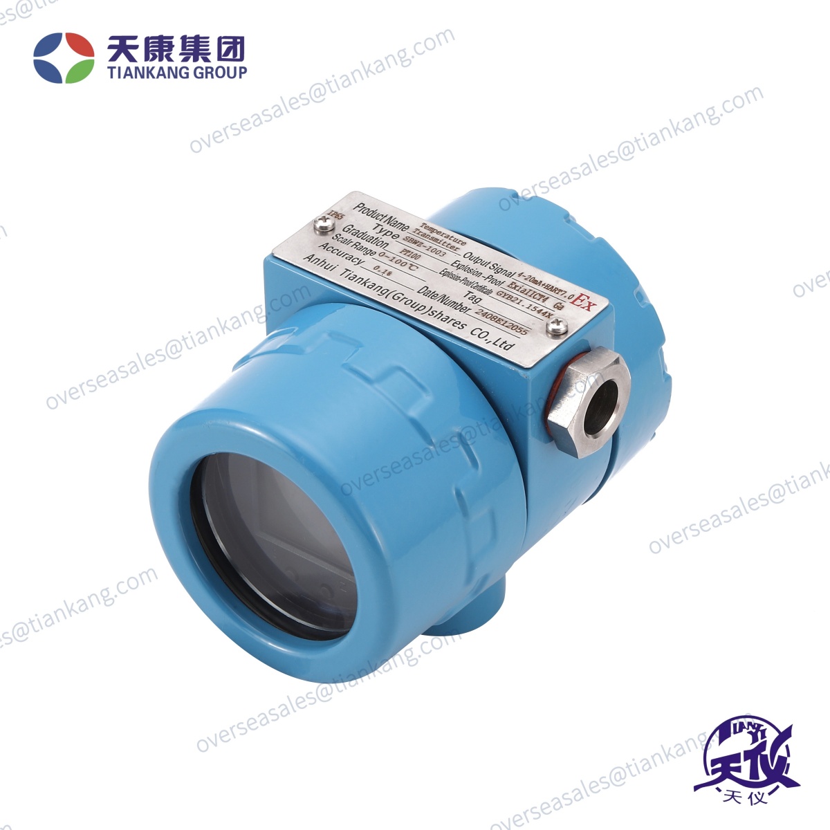 Температурный датчик Tiankang обычно используется в сочетании с индикаторными приборами, регистрирующими устройствами и электронными вычислительными машинами. Он выдает выходной сигнал 4–20 мА и напрямую измеряет температуру жидкостей, пара, газов и твердых поверхностей в диапазоне от -200 до 1300 °C, где на производственных площадках присутствуют взрывоопасные вещества, такие как хлориды углерода.